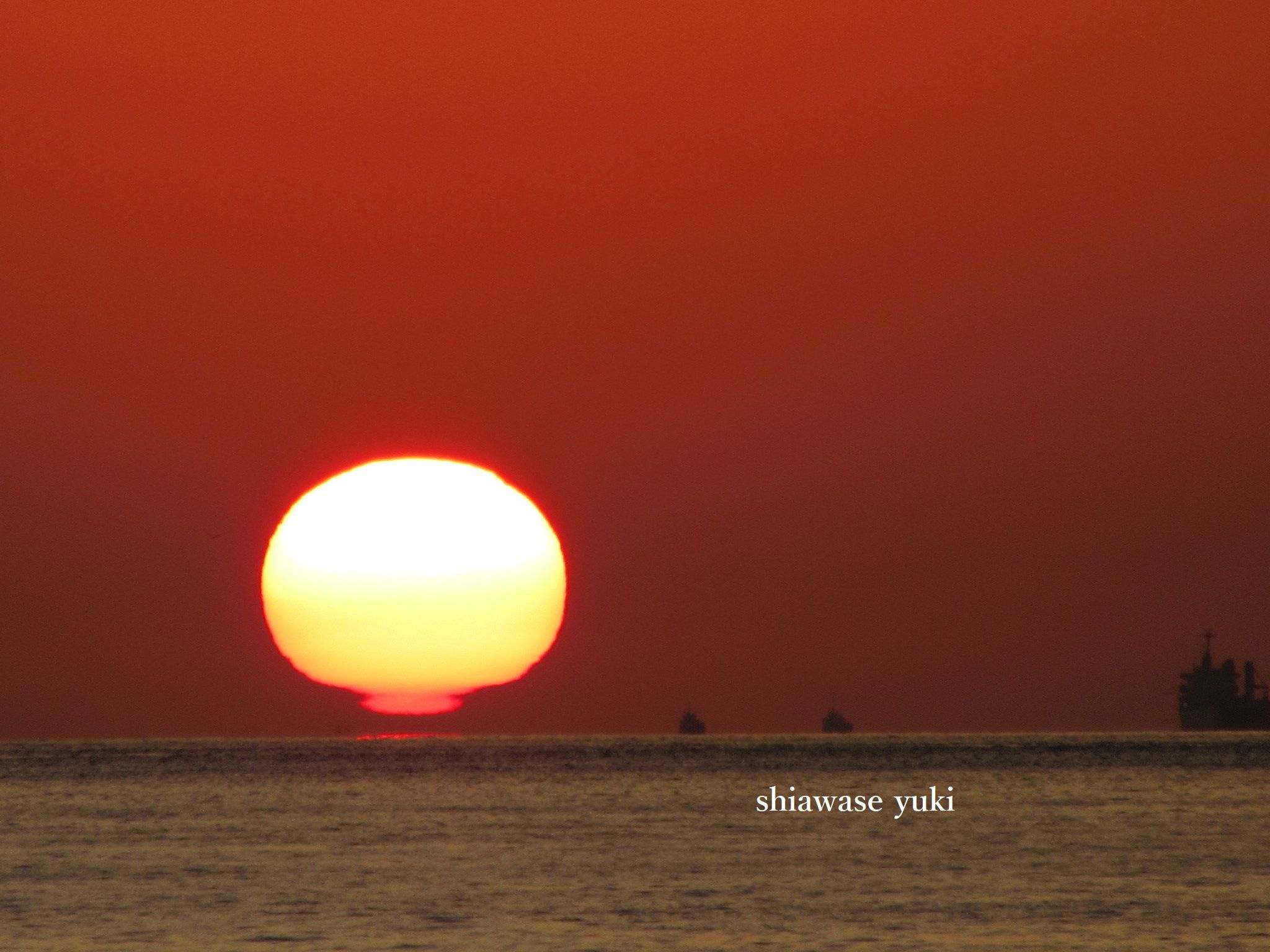 『だるま夕陽』の変形でしょうか。まさかこんな画像が撮れていたとは、驚きです。