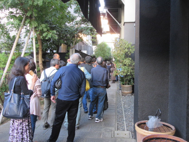 | 『自由席147番』といえば、ほぼ最後部席か柱の陰。 列に並ぶのも最後部に近いところで待ちました。 孝子さんのライブにはない雰囲気の待ち風景です。 | |