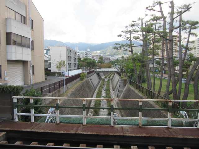 | 阪神電車石屋川駅下車。 ホームは川の上にあり、ホームから六甲山が見えます。 | |