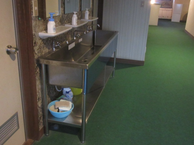 | 真ん中の建物で受け付けをして二階へ。昭和情緒一杯です。洗面所などは山奥の温泉宿で体験して以来です。 |