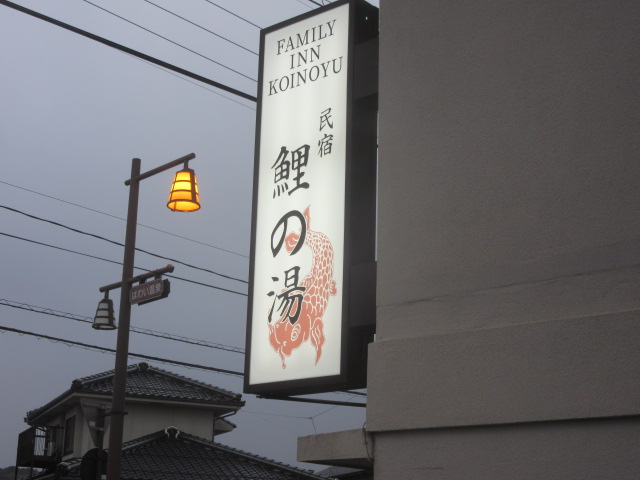 | 駅前のレトロな喫茶店で、また孝子談義。各駅停車のバスに揺られ、はわい温泉の(民宿鯉の湯)へ。想像より立派(^^)/~~~ |