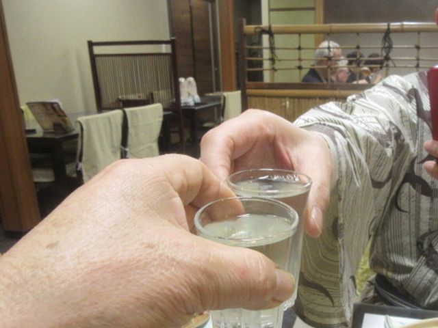| Sさんと乾杯(^_^)v 蟹を食べてると無口になる心配も無く、孝子談義で三時間。身も心も満腹、雑炊には手をつけられませんでした。 |