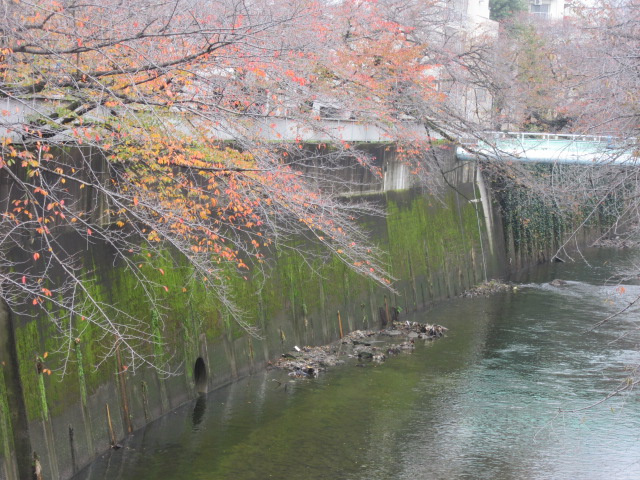 『面影橋』から観た川辺です。桜の並木でしょうか。この川の名前はなぜか『神田川』