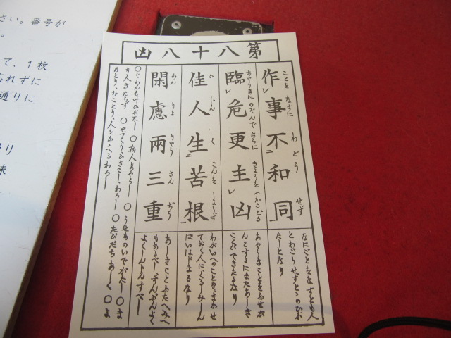 『注意喚起として心にとめて、行動して下さい』との事でしたが、おみくじ札が88番だったのに、、、。