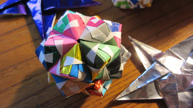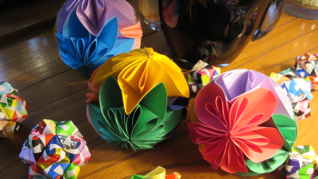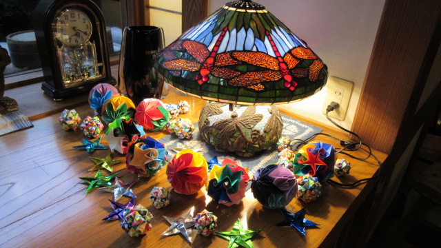 | 折り鶴でも苦労するのにこんな見事なものを、どなたが折られたのでしょうね。またこの帳場の雰囲気にピッタリ。孝子さんに贈ろうか。 |