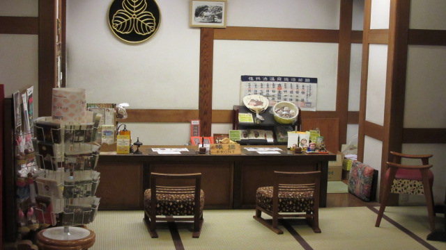 | 趣きのある玄関を潜り、畳敷きの一角に帳場。宿全体からするとこのフロアーだけ『異次元』。数分後は『あの世界』へ招待されました。 |