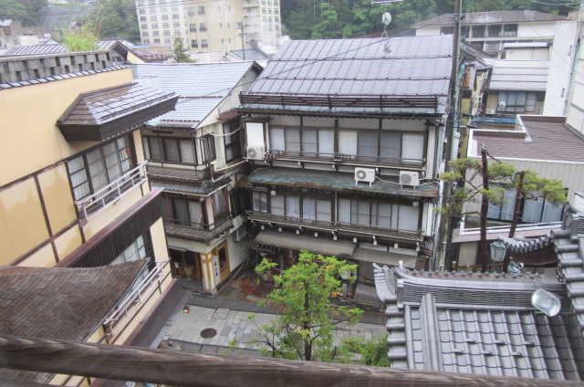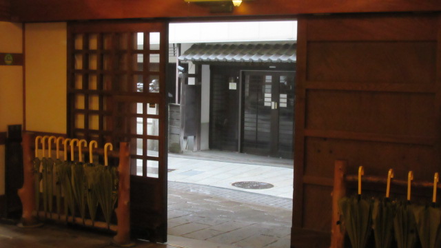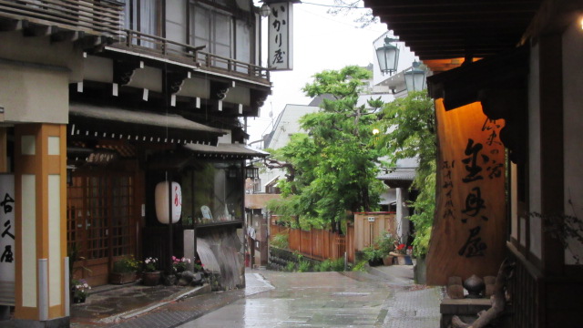 | 長年夢見てた『渋温泉』。あいにく小雨。期待が高まり胸が熱くなります。憧れの宿『金具屋』はどんな表情で迎えてくれるのでしょうか。 |