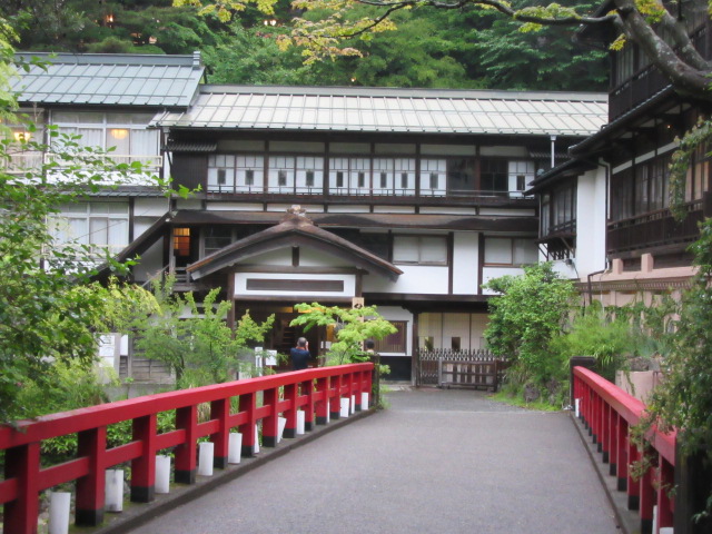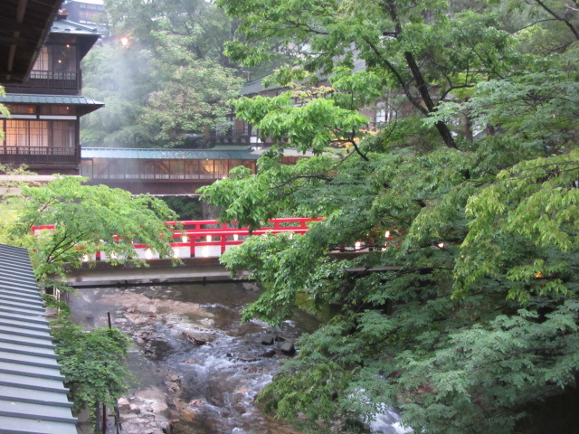 | 通された部屋は、川のせせらぎが絶えず聞こえます。歴史有る建物で、『金具屋』とは別の趣きがあり、北海道の某宿を思い出しました。 |