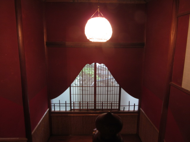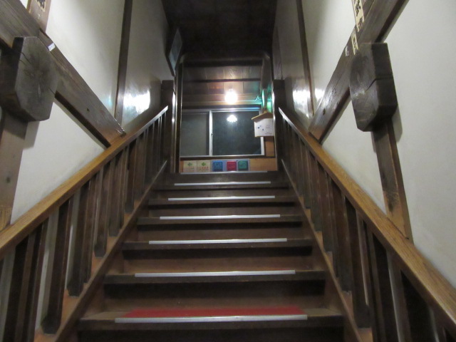 | 宿に戻り昨日撮り損ねた階段の踊り場の『富士山と月』。絵になりますね。昔の人の『粋と遊び心』を感じます。 |