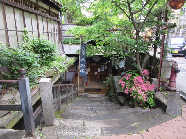 | 『撮り鉄』のまりもさんと別れて、外湯巡り。お勧めの『渋大湯』。入り口は別々、中も別。かなり熱い、徐々に慣れました。 |